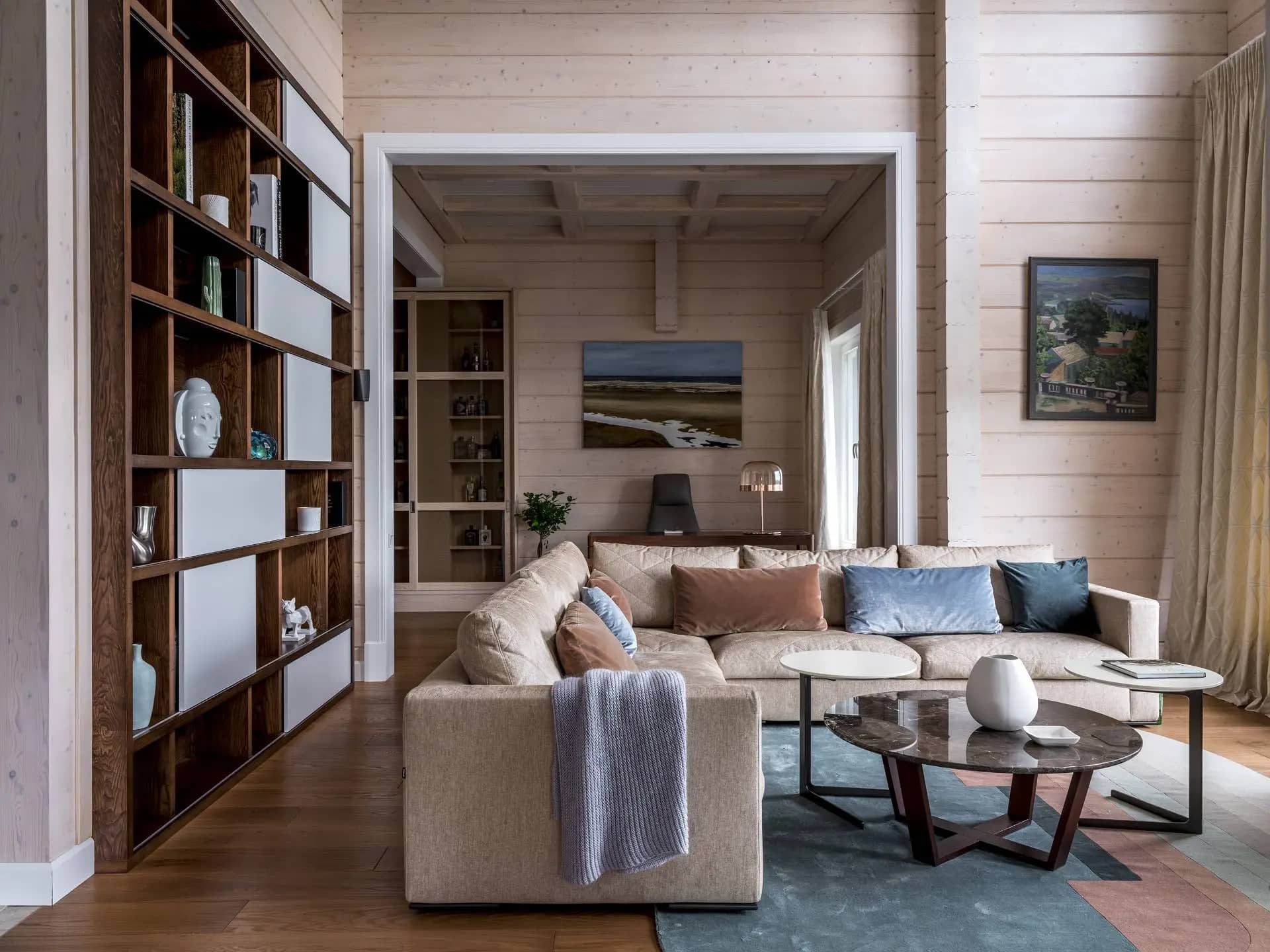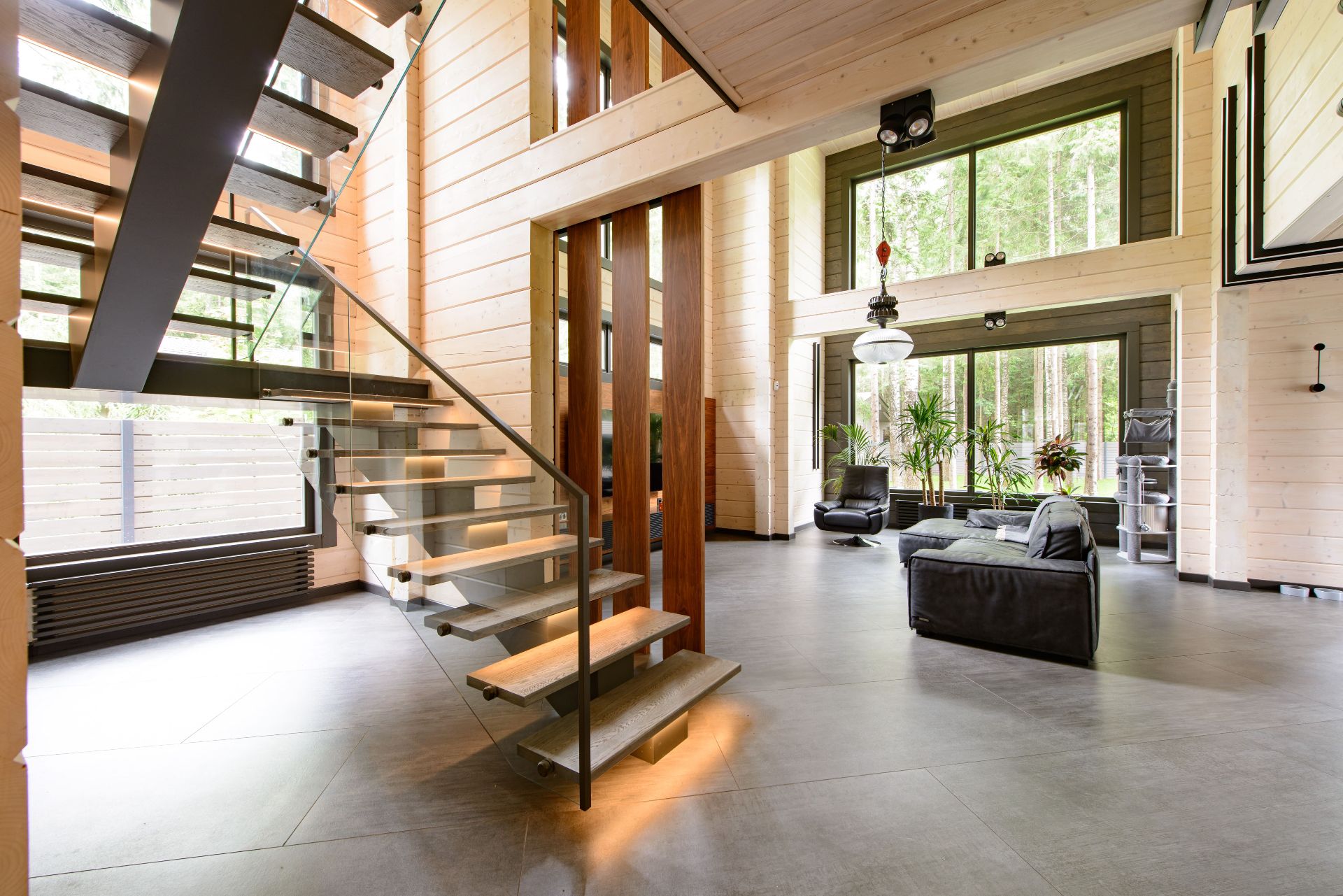 — Собственное столярное производство. Всё, что вы видите и трогаете в доме — из одного дерева, в одном ритме. Фасады, кухни, лестницы, двери, гардеробные — спроектированы и сделаны в комплексе.