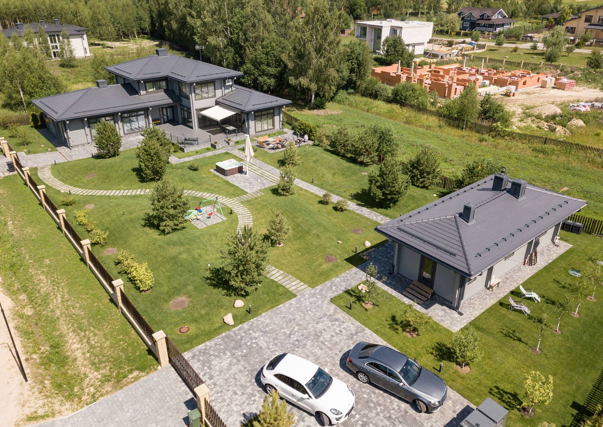 Комплекс включает большой дом, просторный гараж с эллингом для катера или яхты, а также полноценный банный комплекс.