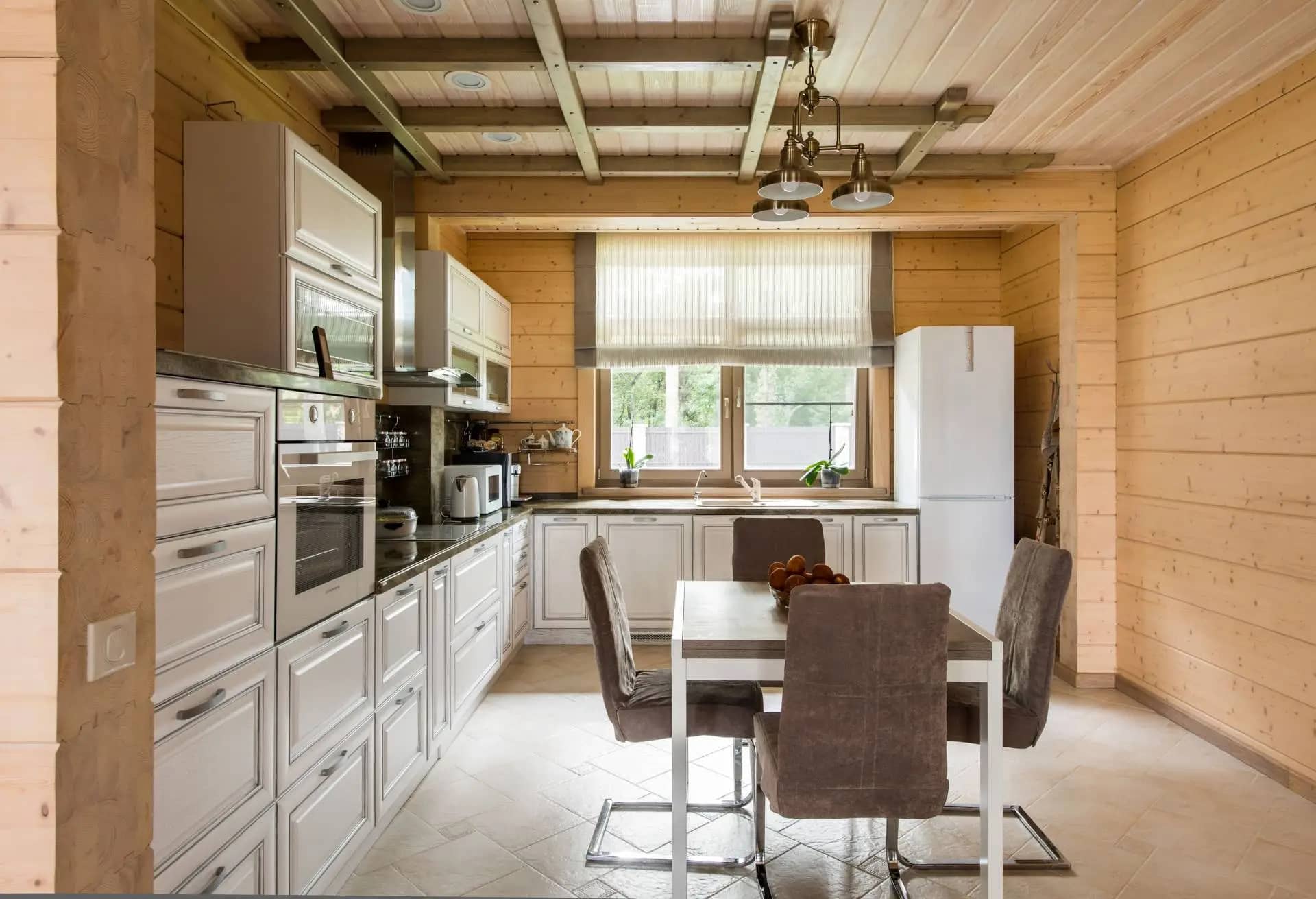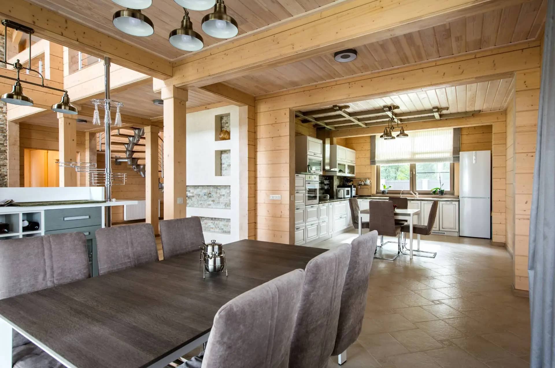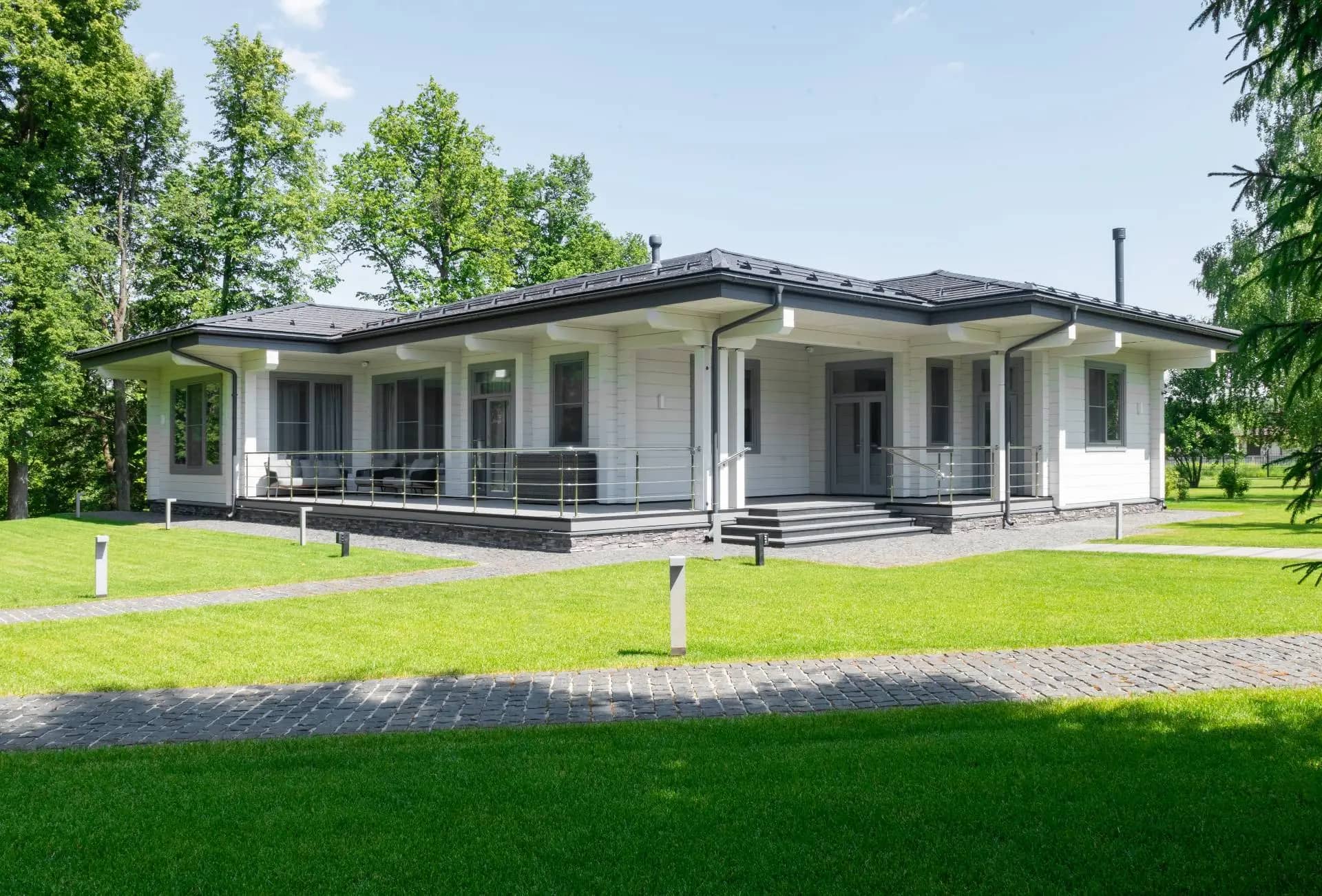 — Клеёный брус камерной сушки из северной древесины. Натуральный, экологичный материал — без клеёв с формальдегидом. Не трескается, не коробится, не требует перекрасов. Сохраняет геометрию и эстетику на десятилетия.