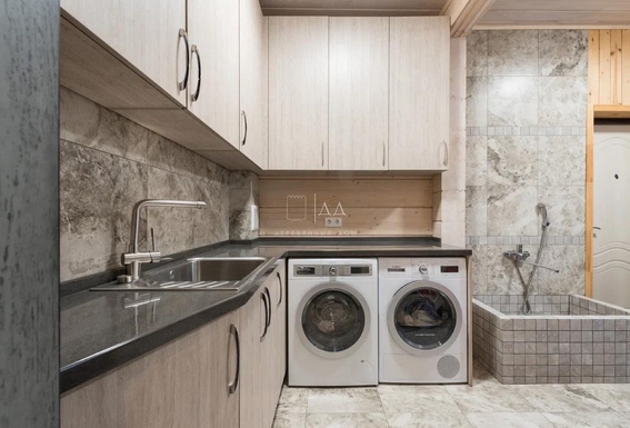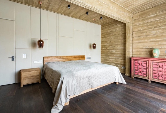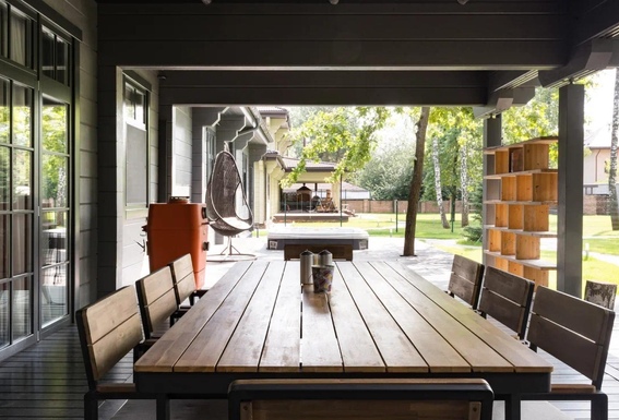 — Собственное столярное производство. Всё, что вы видите и трогаете в доме — из одного дерева, в одном ритме. Фасады, кухни, лестницы, двери, гардеробные — спроектированы и сделаны в комплексе.