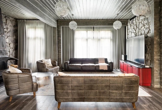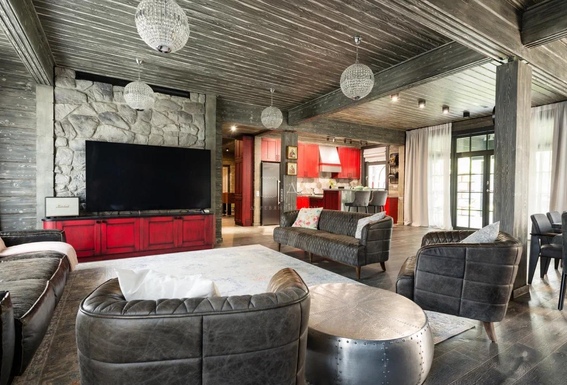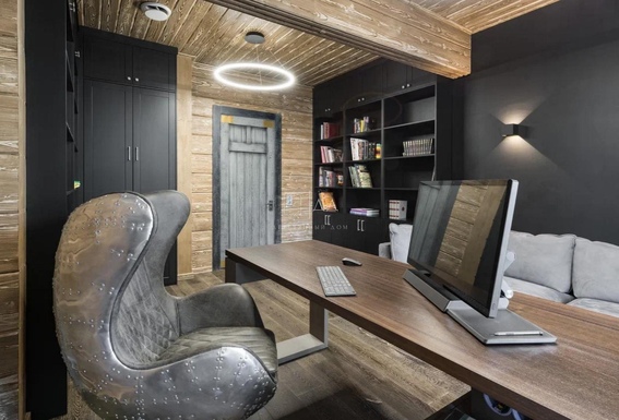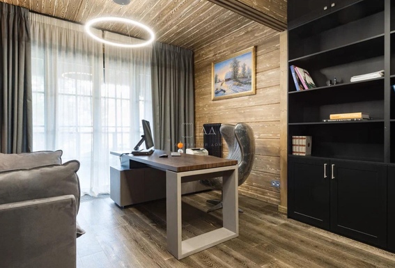 Вы встаете рано, но без будильника. Свет скользит по тёплому полу и заходит в спальню через большое окно. В гостиной уже пахнет кофе. Вы проходите мимо кабинета, в котором — порядок, дерево, мягкий свет, и выходите на террасу. Всё молчит. Только лес шуршит листвой — за прозрачным стеклом
