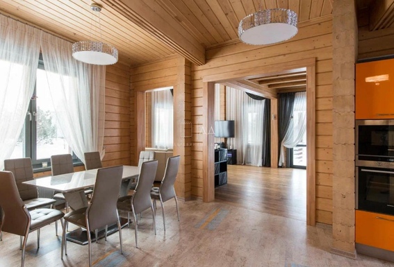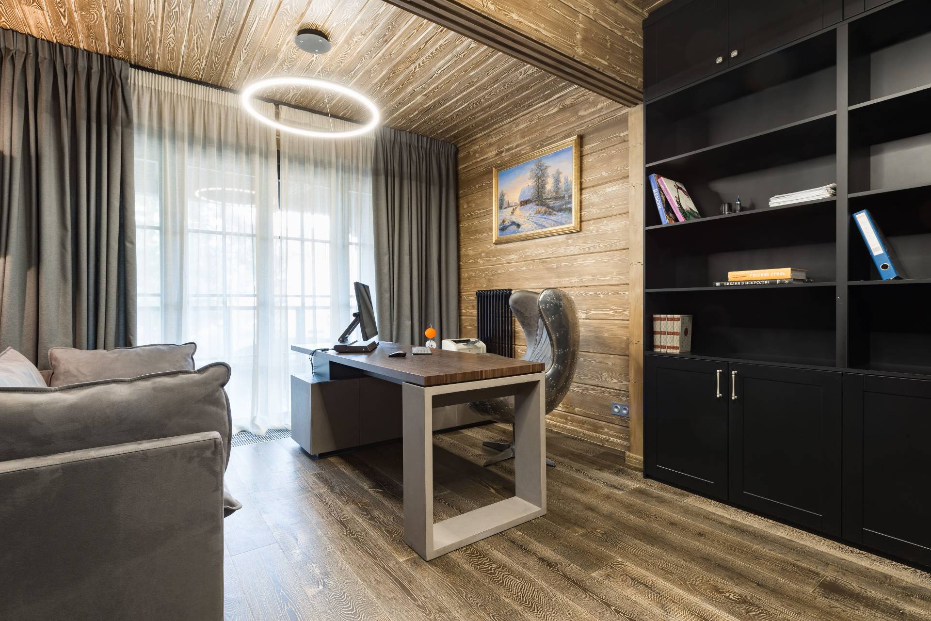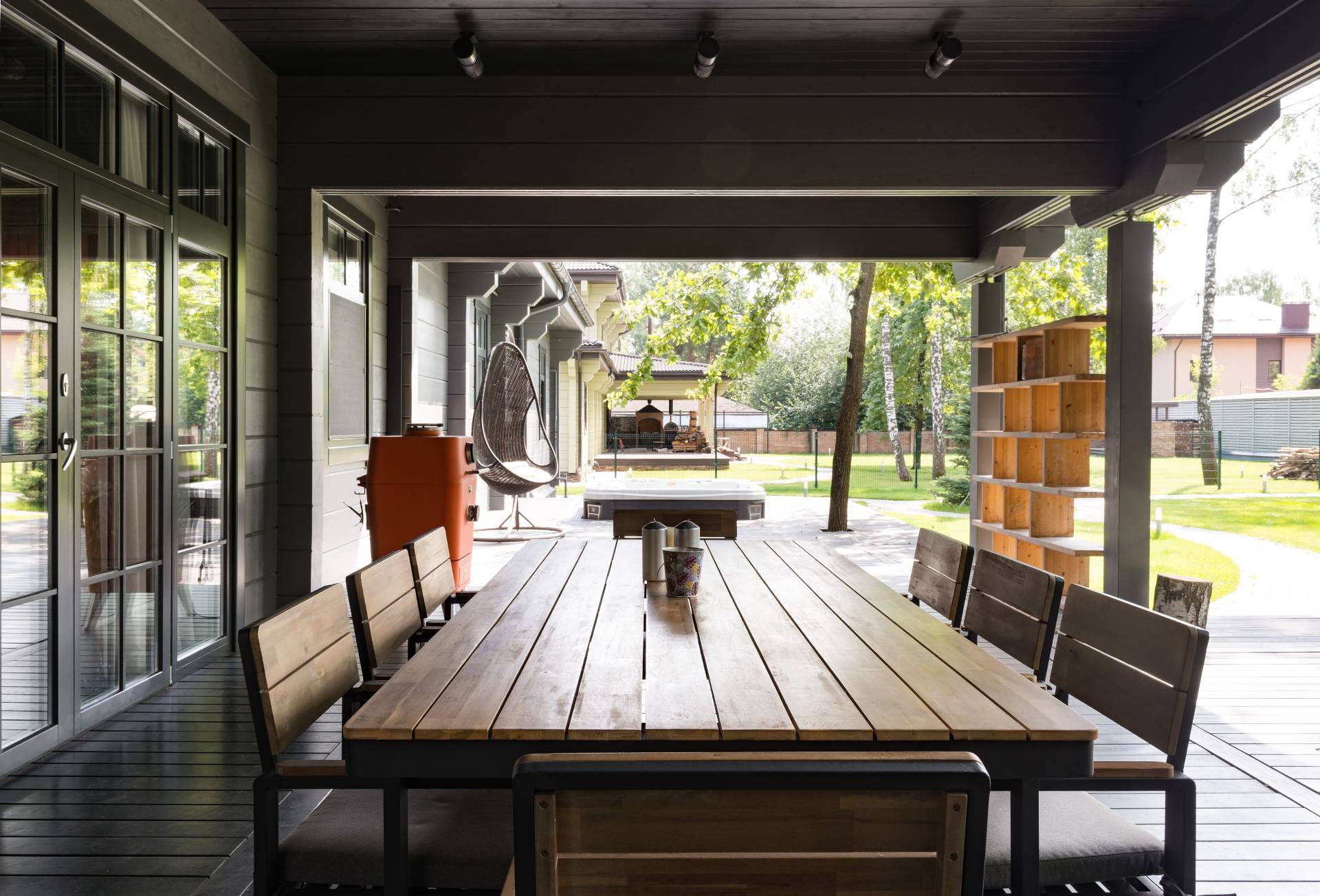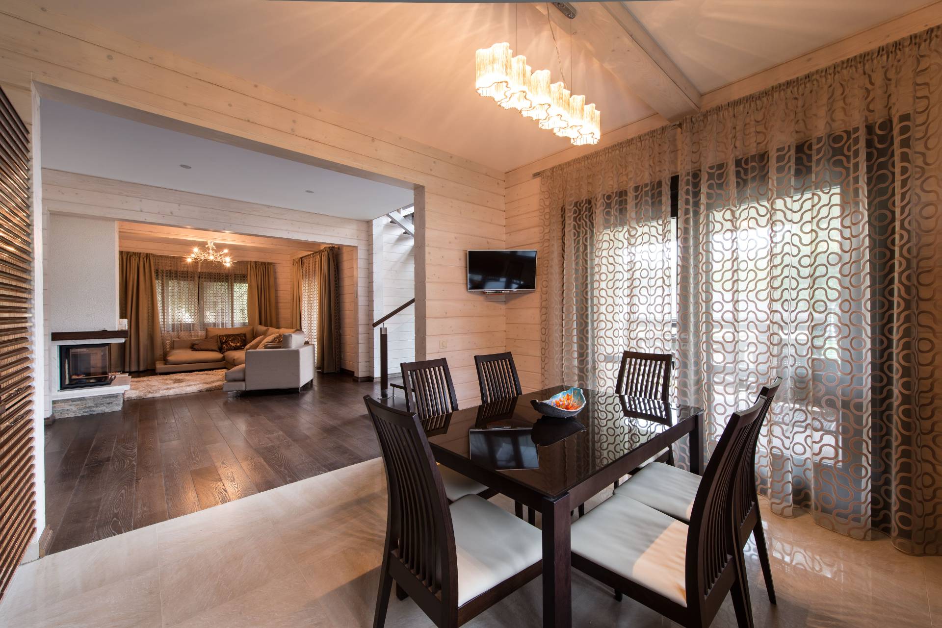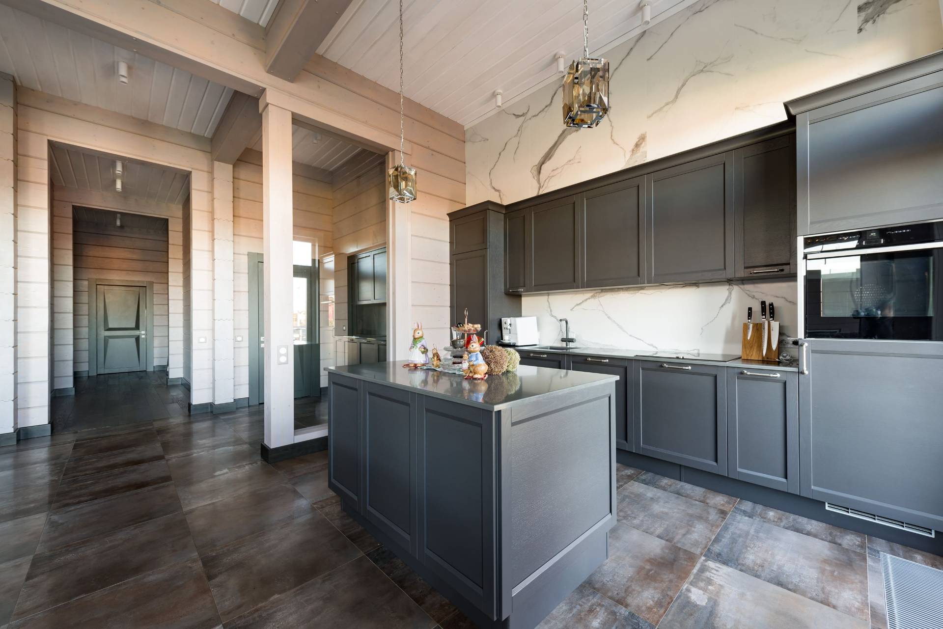 — Собственное столярное производство. Всё, что вы видите и трогаете в доме — из одного дерева, в одном ритме. Фасады, кухни, лестницы, двери, гардеробные — спроектированы и сделаны в комплексе.