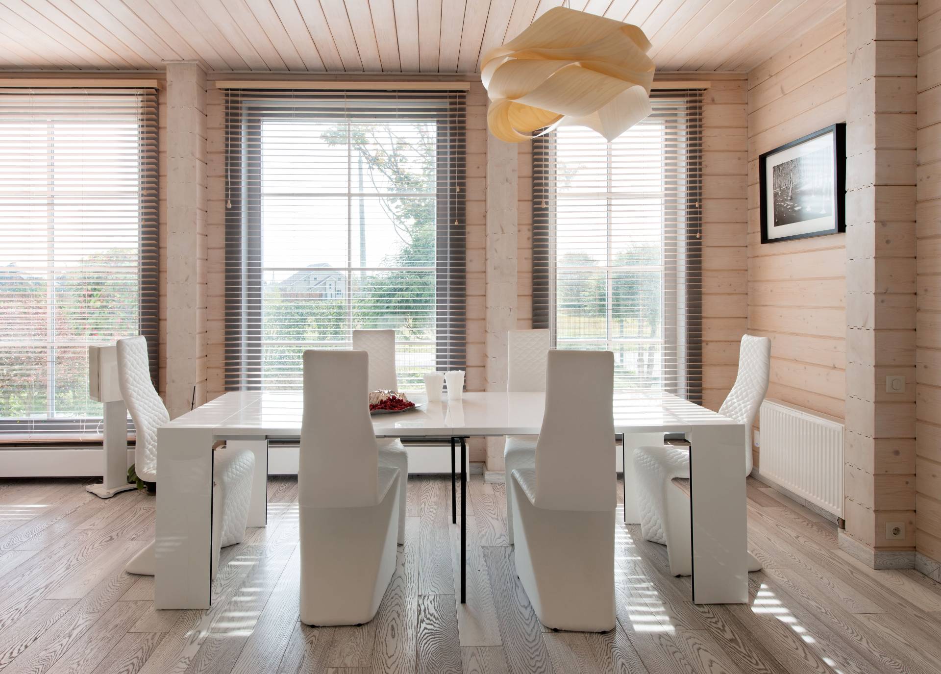 Клеёный брус камерной сушки из северной древесины. Натуральный, экологичный материал — без клеёв с формальдегидом. Не трескается, не коробится, не требует перекрасов. Сохраняет геометрию и эстетику на десятилетия.