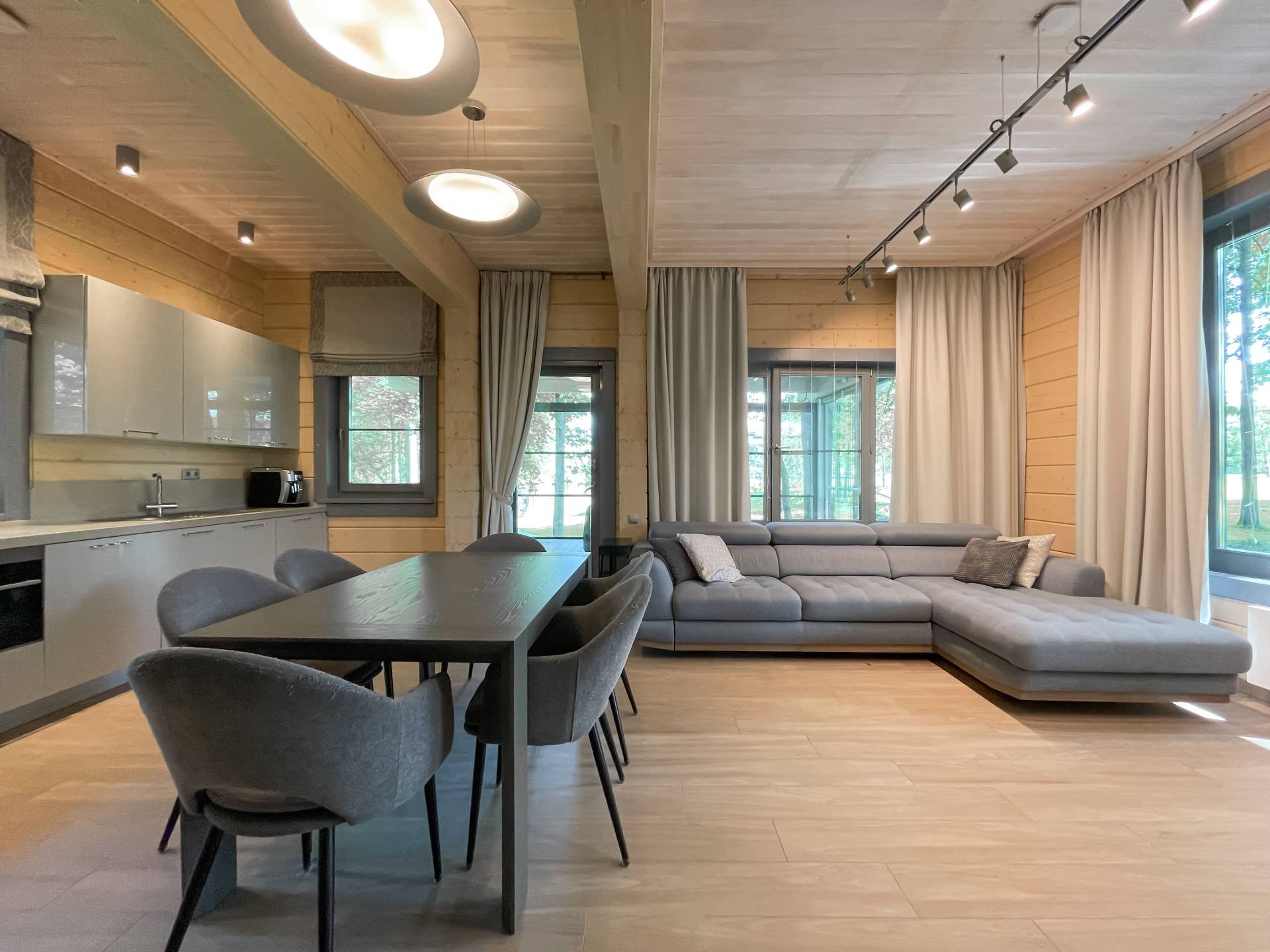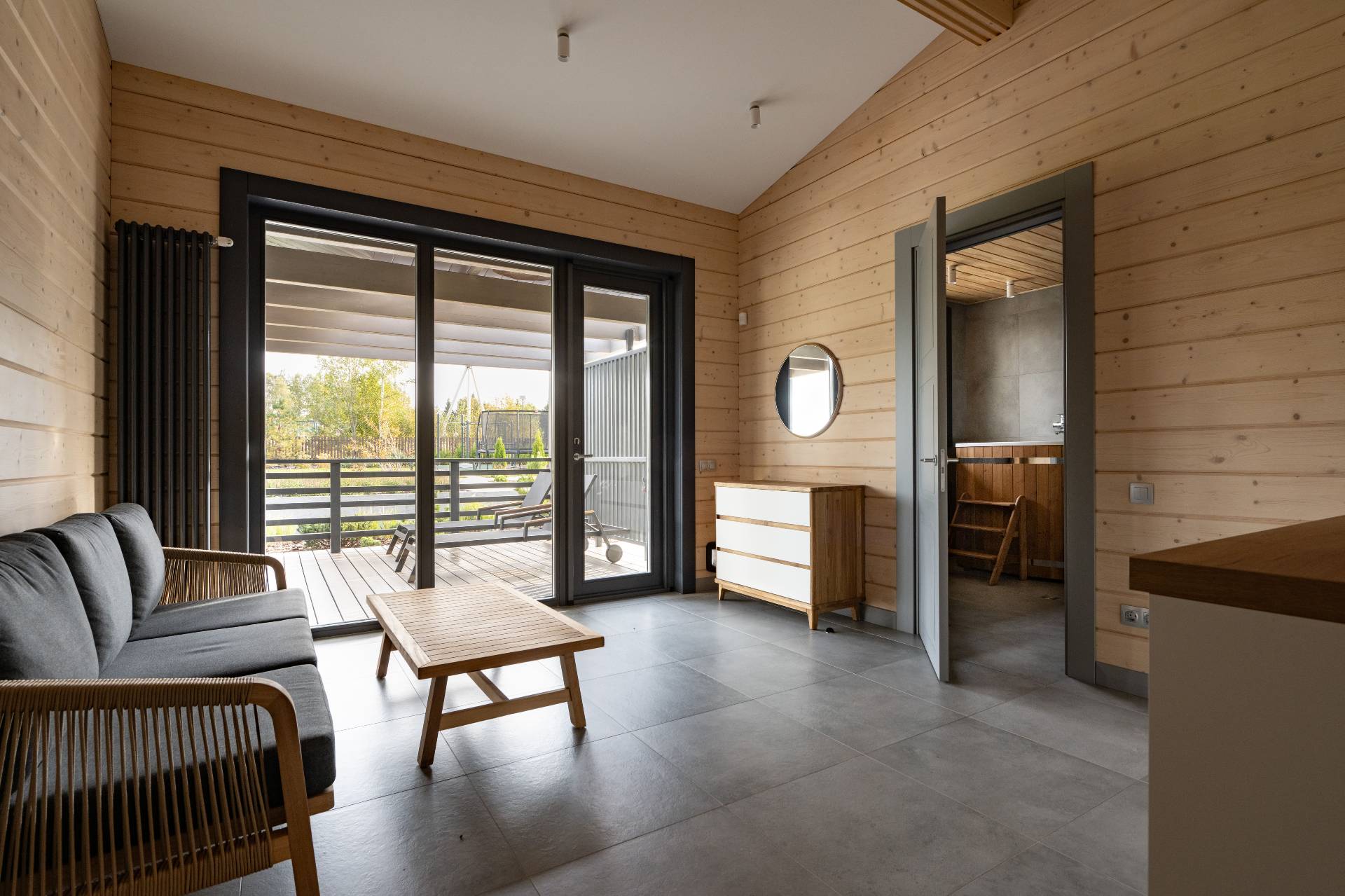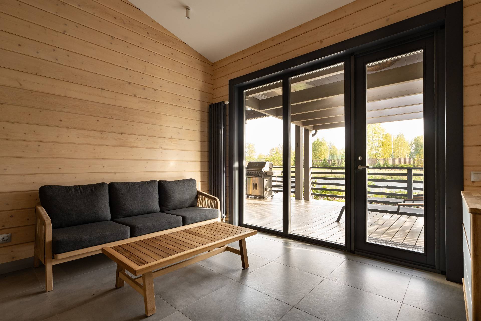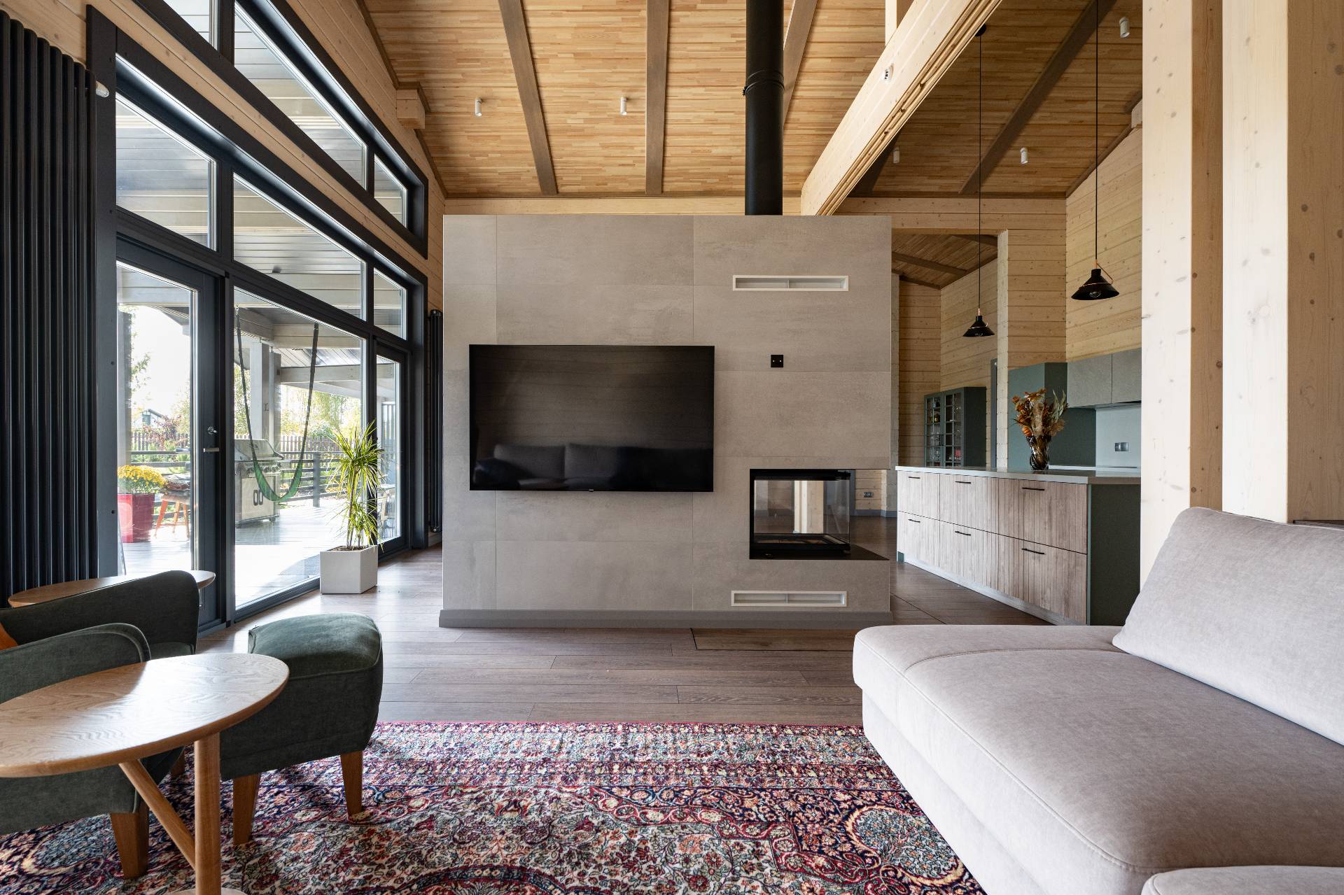 Вы входите, не включая свет. Здесь он проникает сам — через широкое стекло, без лишнего блеска. Воздух, дерево, тепло под ногами. Этот дом не отвлекает. Он возвращает.