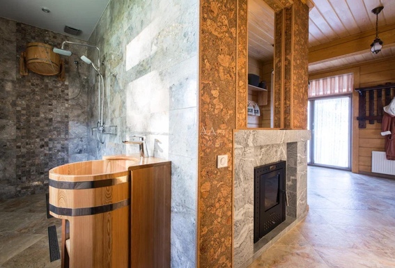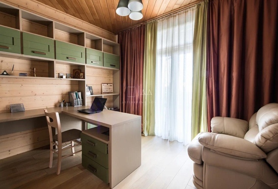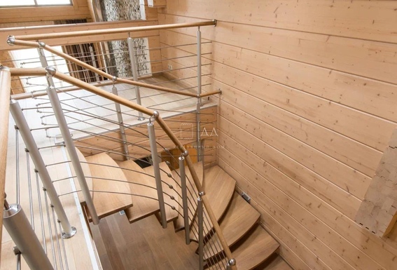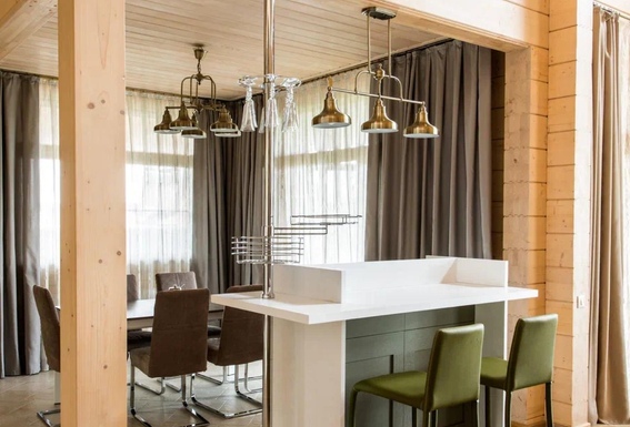— Собственное столярное производство. Всё, что вы видите и трогаете в доме — из одного дерева, в одном ритме. Фасады, кухни, лестницы, двери, гардеробные — спроектированы и сделаны в комплексе.