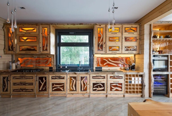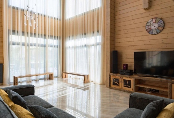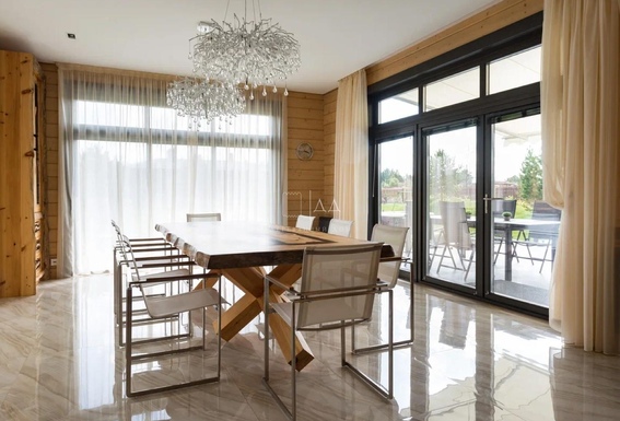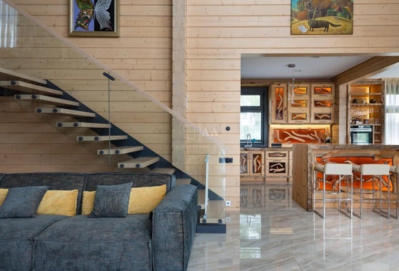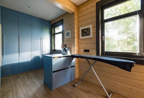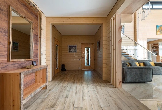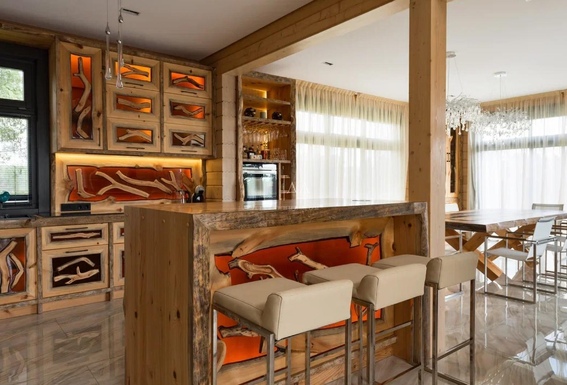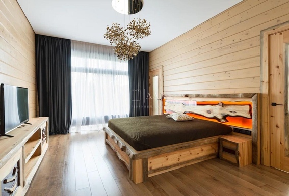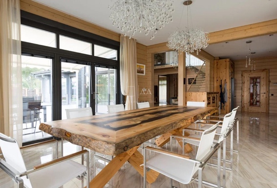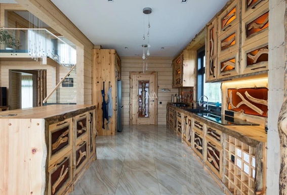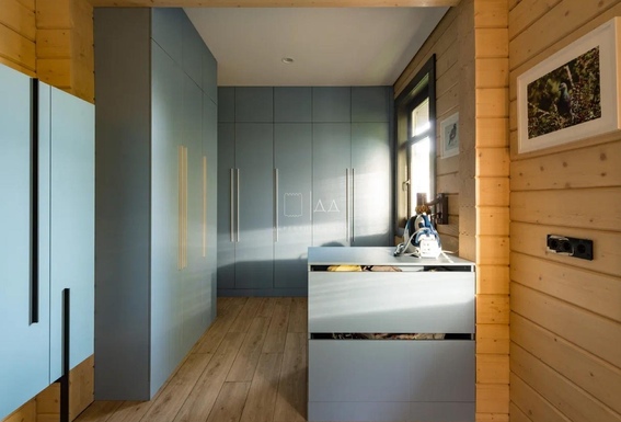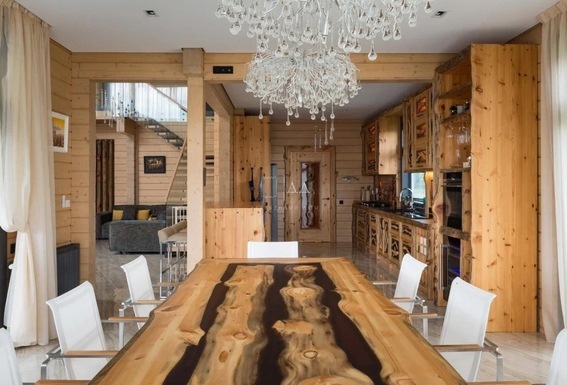 — Собственное столярное производство. Всё, что вы видите и трогаете в доме — из одного дерева, в одном ритме. Фасады, кухни, лестницы, двери, гардеробные — спроектированы и сделаны в комплексе.