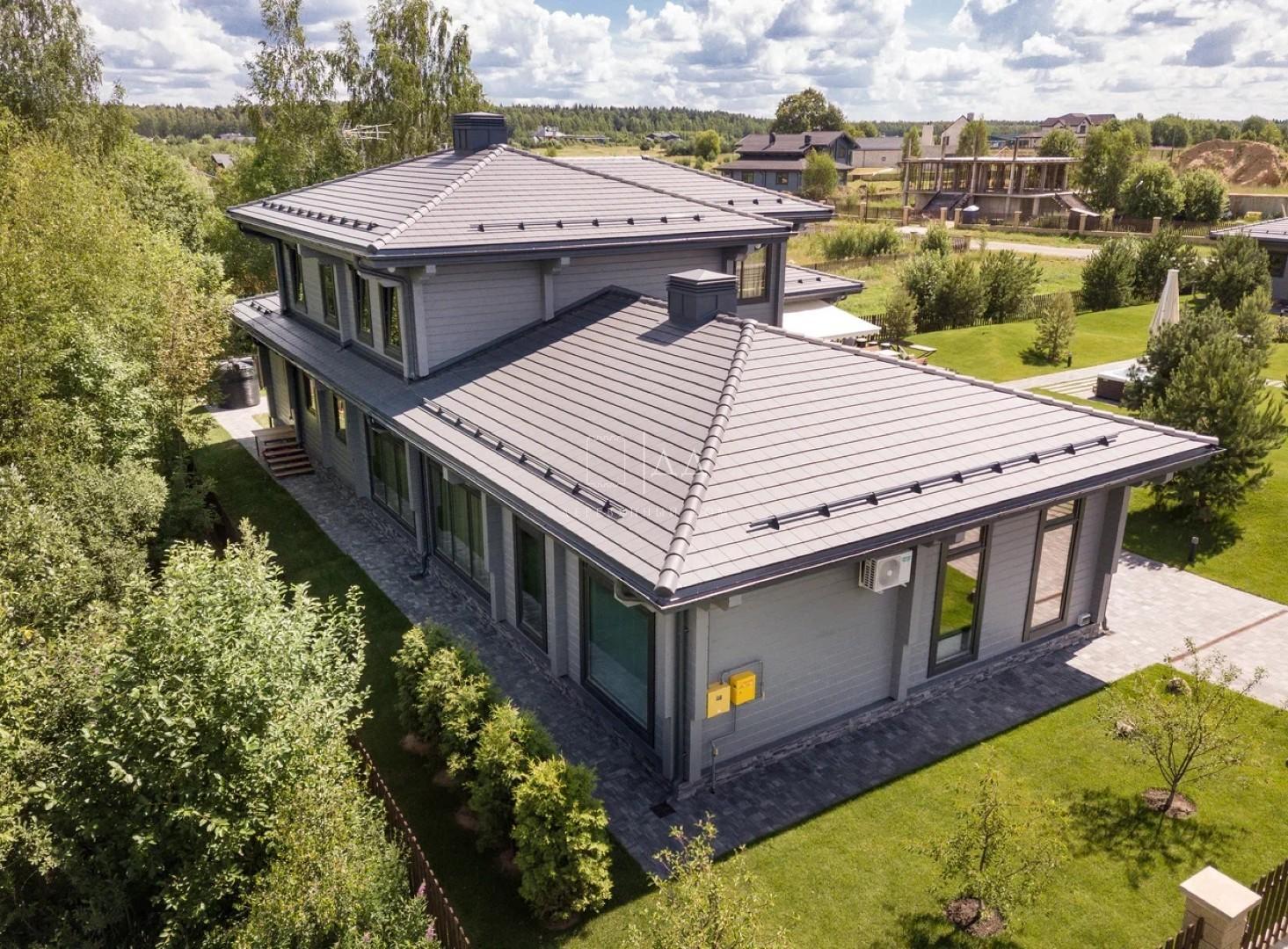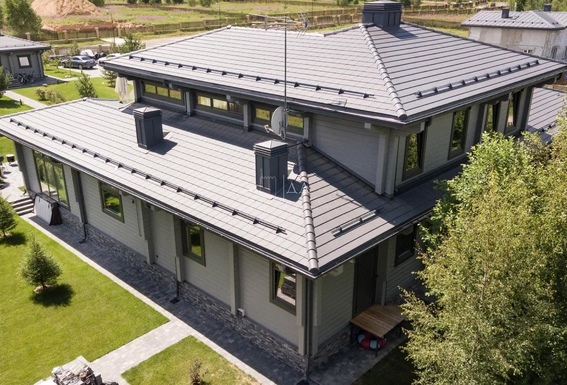 Выбираем покрытие исходя из наклона, деревьев и эстетики фасада. В основе — утеплённая конструкция (200 мм), мягкая кровля премиальных брендов (США, Финляндия), снегозадержание и металл-система водоотвода. Всё работает на срок службы и акустический комфорт.