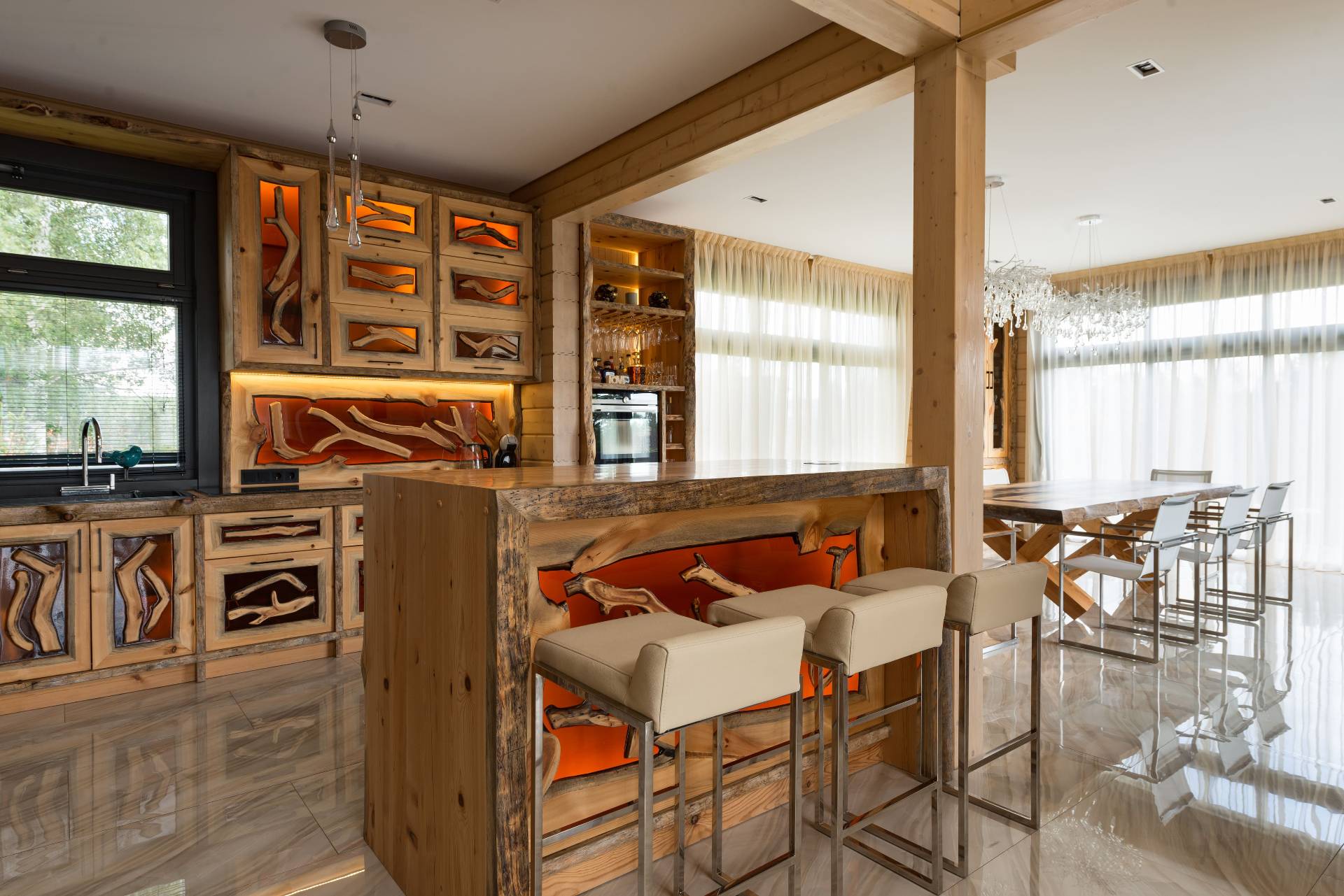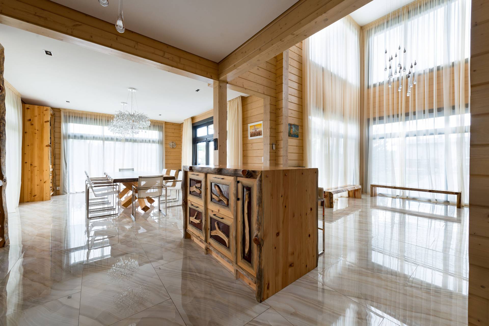 — Собственное столярное производство. Всё, что вы видите и трогаете в доме — из одного дерева, в одном ритме. Фасады, кухни, лестницы, двери, гардеробные — спроектированы и сделаны в комплексе.